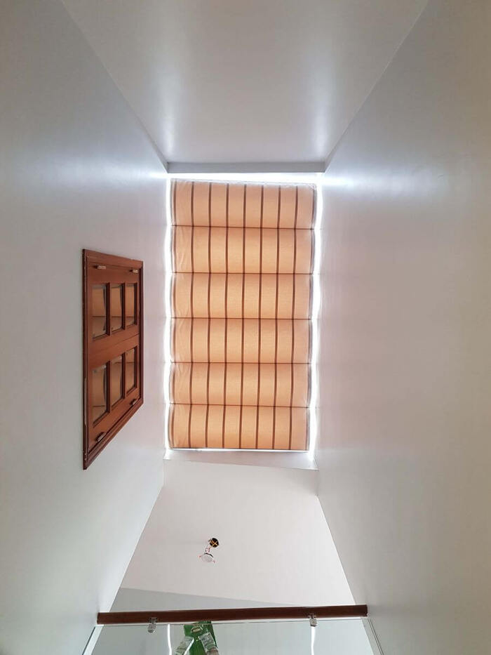 Mái bạt xếp che nắng mưa giếng trời không chỉ ngăn chặn ánh sáng mặt trời mà còn giữ cho cầu thang gỗ không bị cong vênh và phai màu do tác động của thời tiết. Đây có lẽ là một trong những ứng dụng hiệu quả nhất.